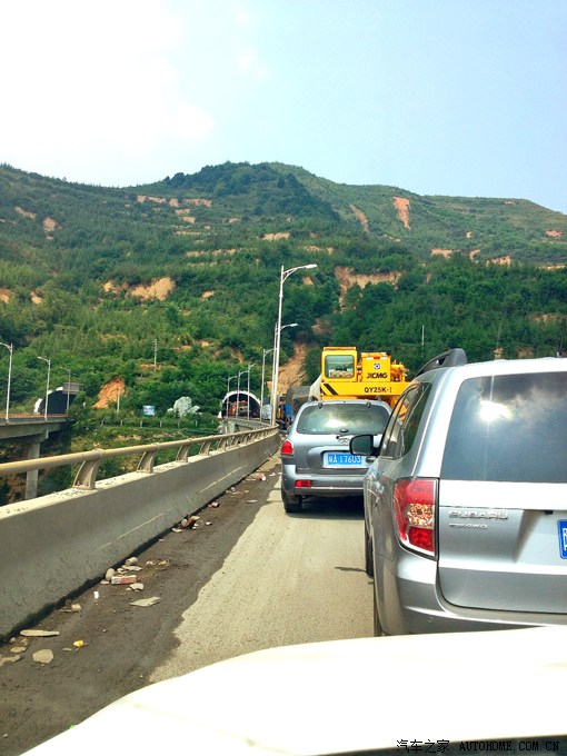 被堵在甘肃的高速上了,在大桥上堵车心里有些忐忑,后来很多货车都不敢上桥了,停在桥边,应该是怕把桥压塌了