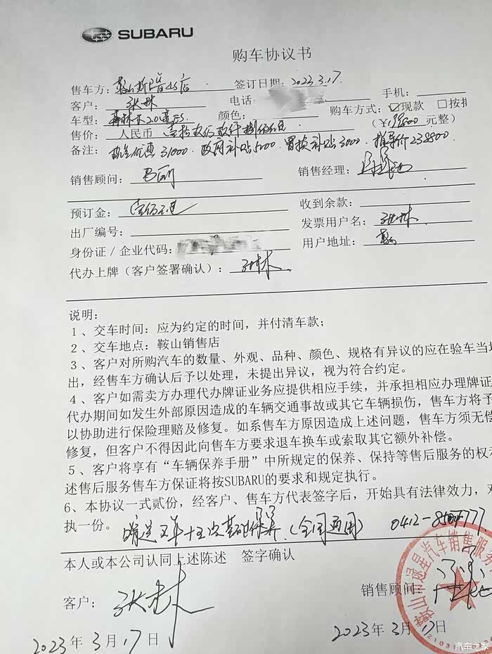 下单了 2.0豪华eyesight版 不到20万成交