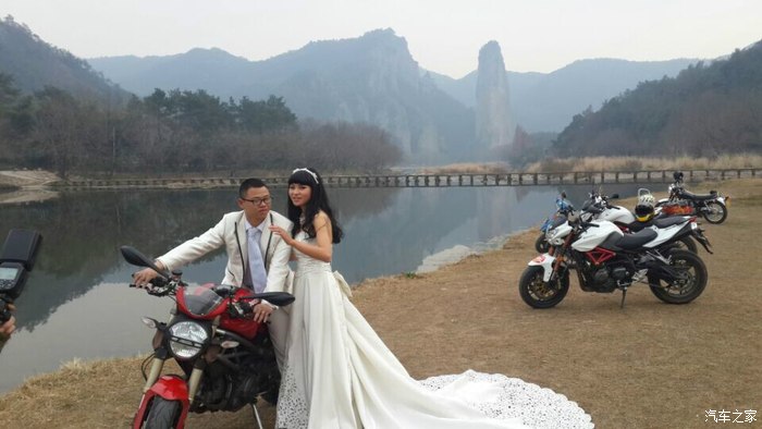 骑行其实是件很随意的事情,可以不选择时间不选择目的地,随时随地随意出发,当然是在确保安全的前提之下。这次骑行就是这样,原本是组织大家在东阳的南江水库边压弯的,午饭打算在一朋友的鱼馆解决,或者去千祥吃全羊宴的。后来缙云过来的小黑,一个劲地吹说他们缙云壶镇的烧饼如何如何,禁不住诱惑,大家在南江水库玩玩就驾车去了缙云。去了才发现,这个决定是完全正确的!磐安到缙云的柏油路相当好,车少又没有砂石,非常适合压弯,更重要的是沿途的风景美的叫人窒息,当即哥就决定:明年的春天夏天秋天都要再来压弯,有一起的兄弟美女可以报名占位子!烧饼吃完后,我们又去缙云仙都风景区玩,在那里遇上了两对拍婚纱的新人,把我们的车子给征用了去,哈哈!