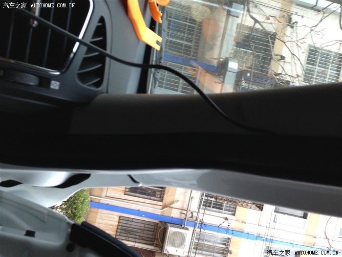 线是从记录仪出来后直接塞进上方的前挡玻璃的夹缝内,向右走线到右侧的A柱,