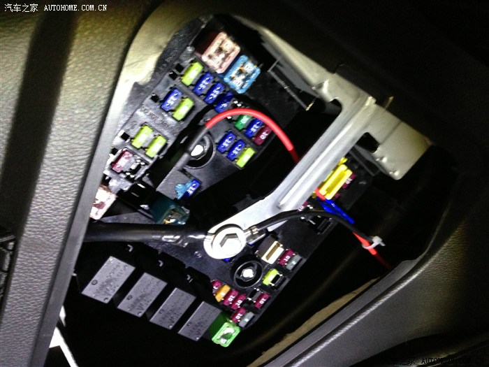 这样的布局完全是暗线,既美观且没有破坏和更改原车的任何电路,不存在出险拒赔的理由。当然图上的这些工具还是事先要准备好的。