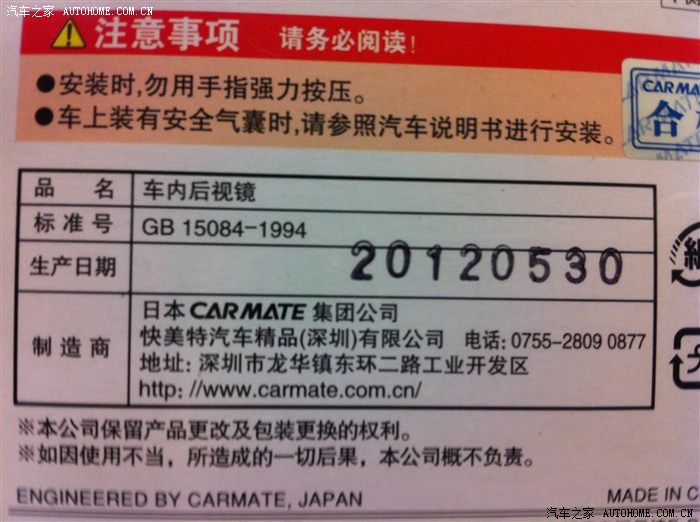 添加了日本的快美特大型曲面车内后视镜,效果好的没话说!!!!视野扩大了好几倍,而且还蓝镜