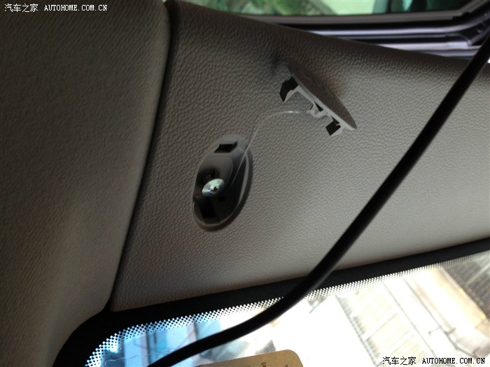 撬开A柱的气囊小盖子,用手一扣就掉下来了,然后用十字起将固定螺丝放松,但不要拧下来,更不要将A柱拉下来,以免破坏A柱内的气囊传感器,只要能塞进导线即可,用力要小心,一边用专用的塑料撬板轻轻下压A柱的护板边缘,一边将导线放进两板的缝隙内,记住:不要放的太深,因为下面就是一条气囊牵引感应器,这样的放法,既美观又不影响气囊的正常使用。