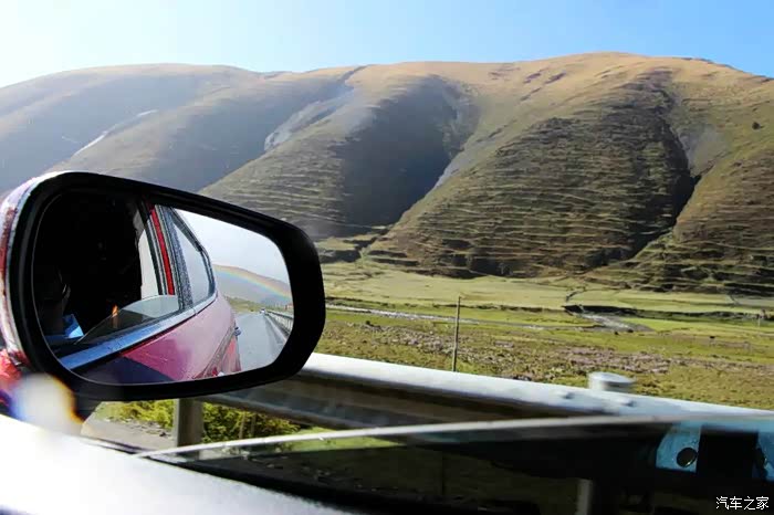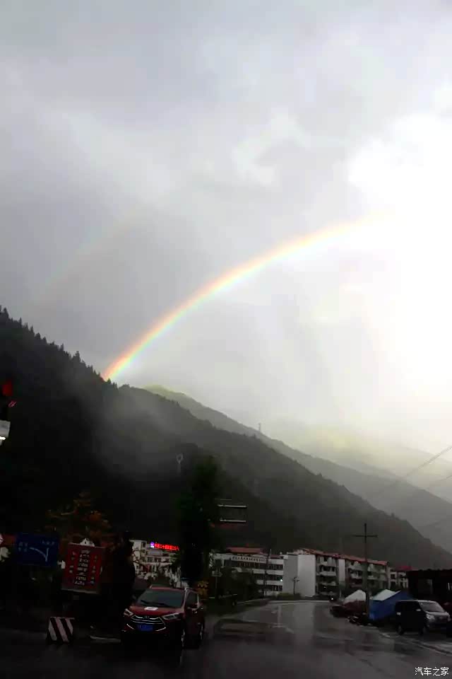 嗖嗖的梭下折多山,天上下着小雨,老司机定眼瞧一瞧后视镜,嘿。。。媳妇儿,有彩虹——祥瑞之兆啊,停车(啪啪啪)来了几张!