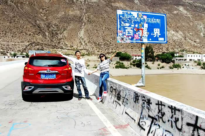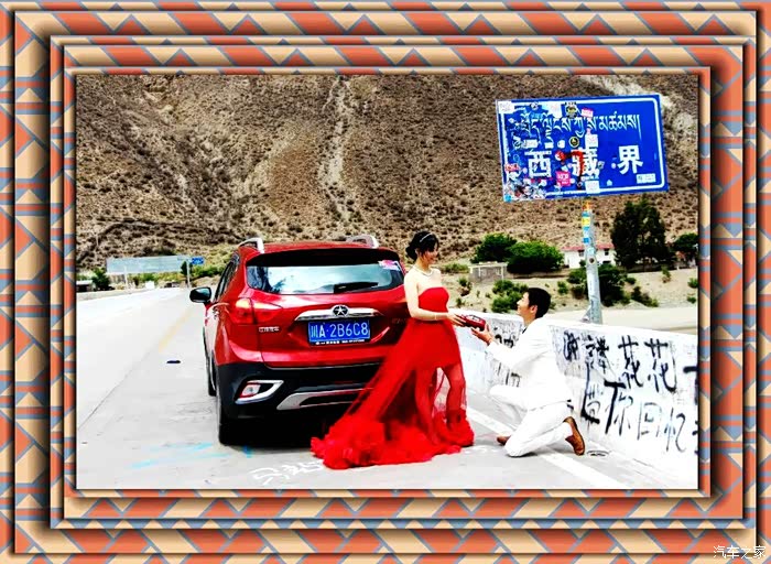在川藏交界处的西藏界碑处合影留念,之前给媳妇儿准备好的礼服派上用场了!