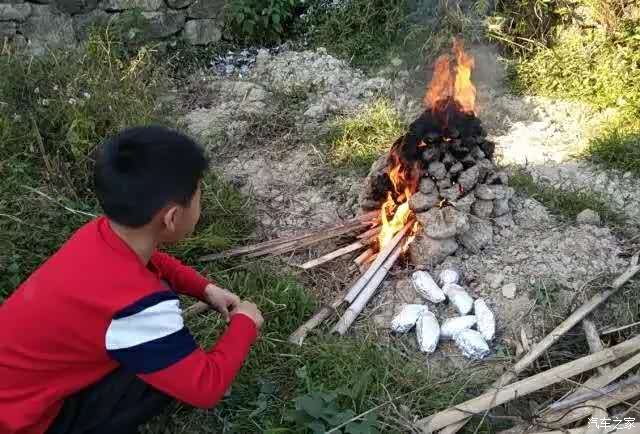 窑顶烧得差不多了,红透的泥块。开始散发出泥土特有的味道,很自然很好闻,再继续烧上半个钟,就可以往里放红薯。