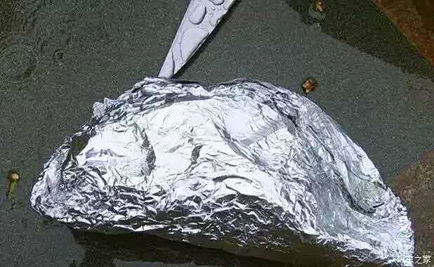 用锡箔纸把包了一层荷叶或芭蕉叶的土鸡。封好,要包严实一点,不然泥巴跑到鸡里面,就没得吃了。
