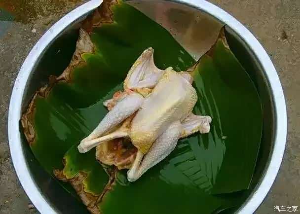 有了正宗的土鸡。配料其实就很简单,香菜或香葱,抹一点盐就行了。新采下的芭蕉叶洗干净,准备包鸡用。一定要用新鲜叶子,如果有新鲜的荷叶更好,没有芭蕉叶,或荷叶,也可以用新鲜竹叶代替,目的都是为增加窑土鸡的清香味。