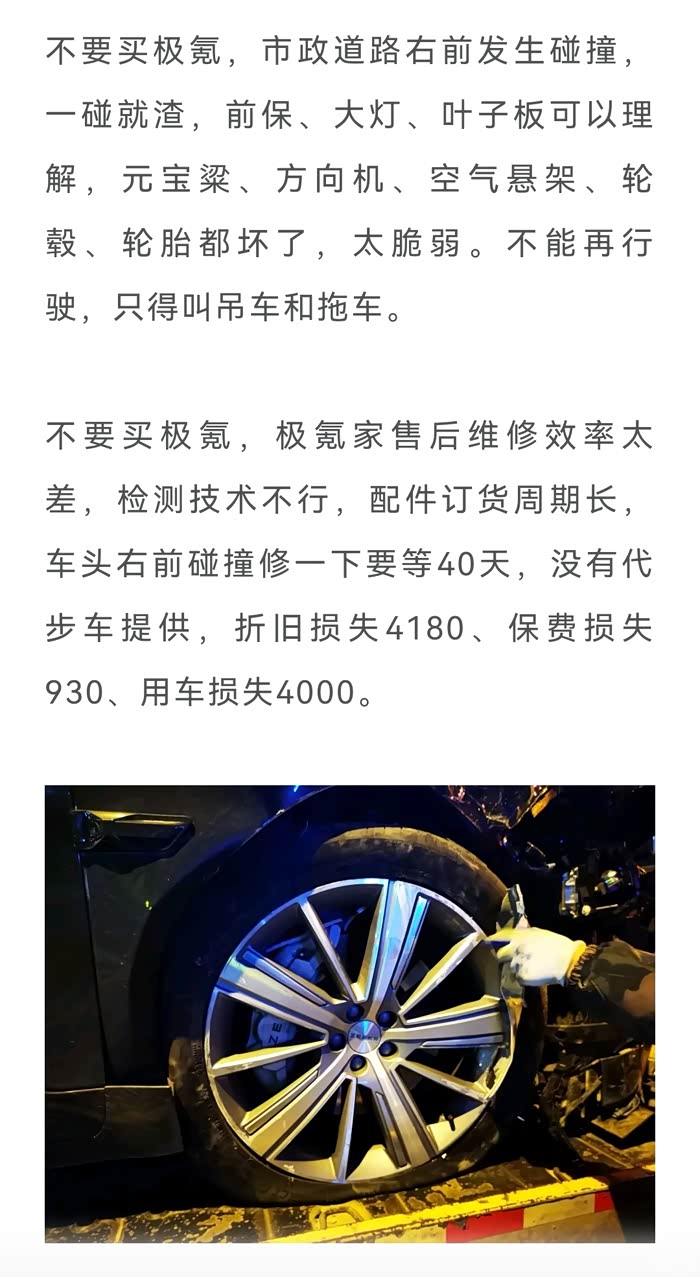 2022年U版,4月下定,9月底提车,车子不好不会从宝马换极氪,23版变相降价不说,这售后是真的差劲,我还是希望国产车的服务好,让BBA靠边。可是,距离豪车品牌和服务差距巨大。售后服务是建立车品牌的核心,车维修也是常有的事,但是一个不大的事故车维修要用40天,检测技术在哪?供应链管理在哪?服务品质在哪?宝马客服至今还在给我电话,预约保养服务,我在极氪APP主动预约没有排期,下不了单!杭州的车拖到嘉兴,再转到苏州,你不问没人告知你换修了什么,也不承诺啥时候能修好。一台车,不是先检测,一次性调货,而是反复拆装,试了不行再约保险说要换,再调货,有点作坊水平。