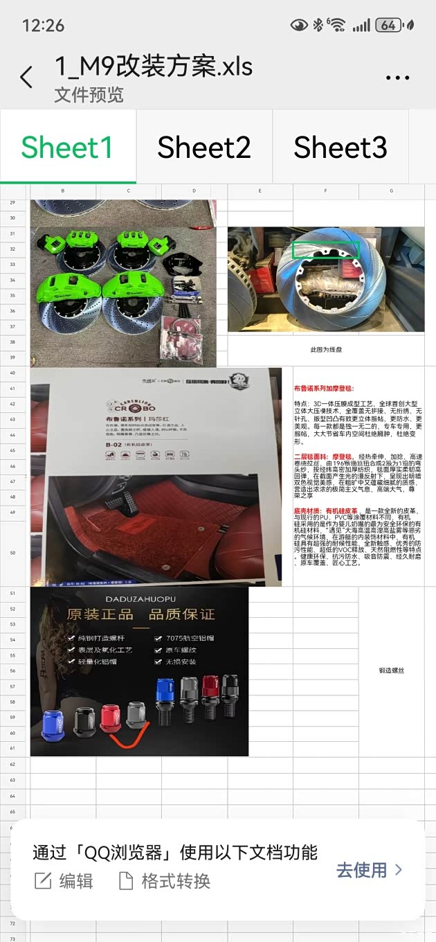 我的车买来都是直接开出去改的,和改装店朋友确定了轮毂、轮胎、刹车、地毯、和轮毂螺丝的改装方案。然后就是等工厂做好改件,发货。