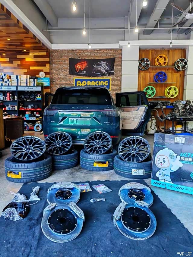 改装店朋友各种电车、油车都改的多见得多,M9拆下来轮胎、刹车后发的朋友圈。朋友评论良心企业,做工用料都好过其他家。