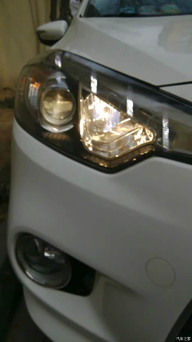 远光近光全开的情况,白天照的,效果不明显,晚上感觉比原灯好一些。K3S虽然自带近光卤素透镜,但和专业氙灯透镜比起来还是有差距的,真要想改氙气灯,这个透镜是不给力的,直接安氙气灯泡估计效果出不来,要换成双光透镜才能发挥氙灯的霸气。