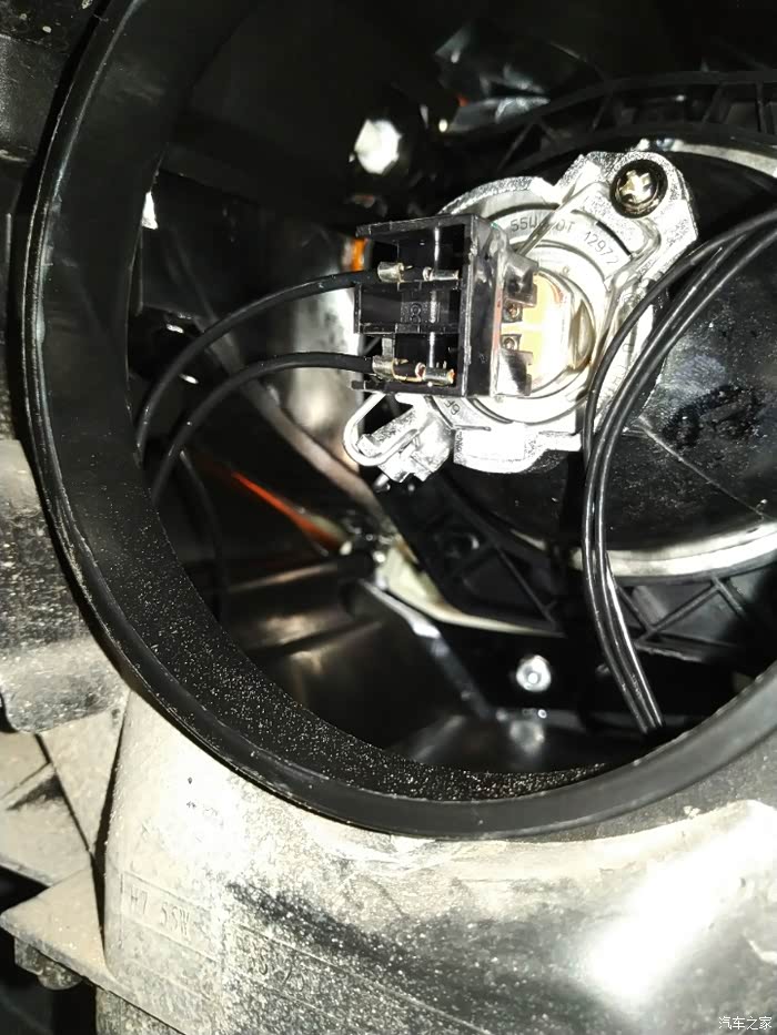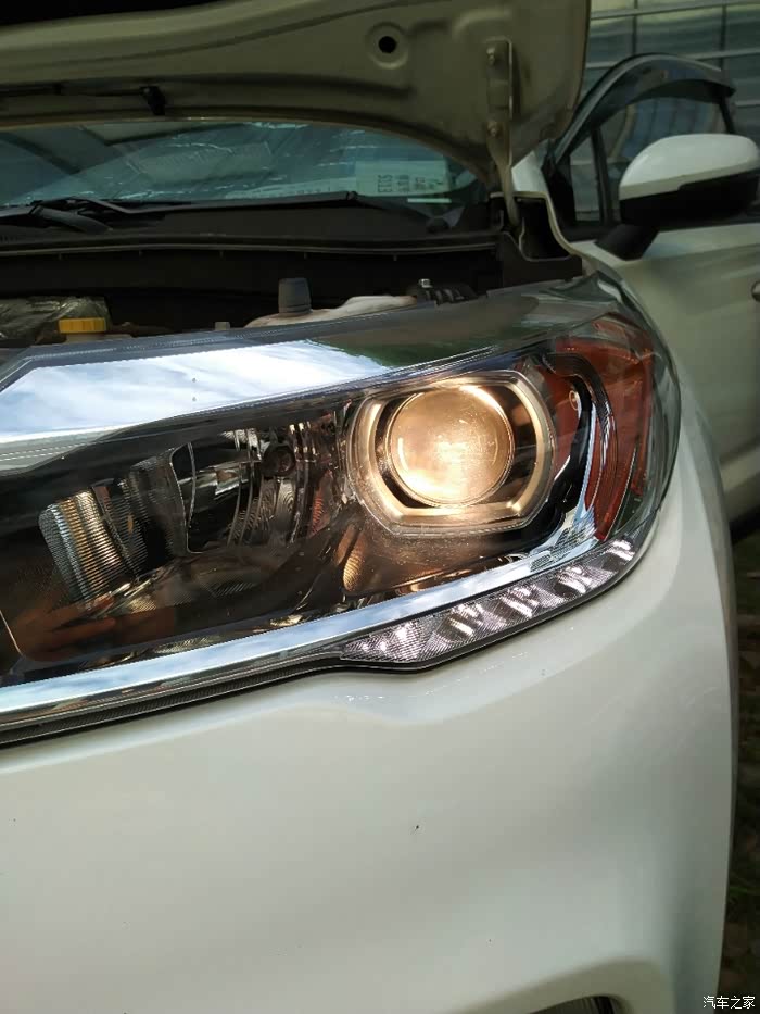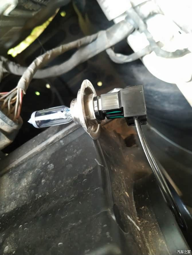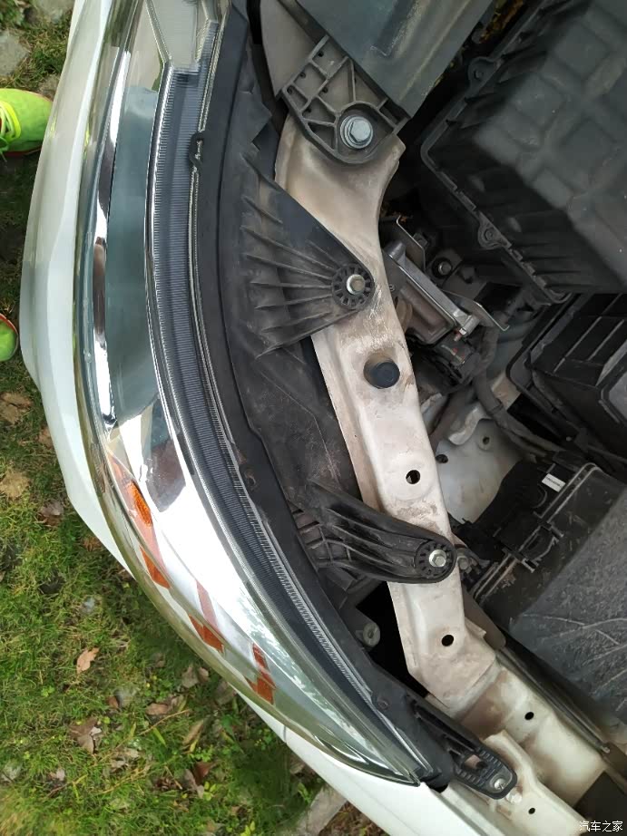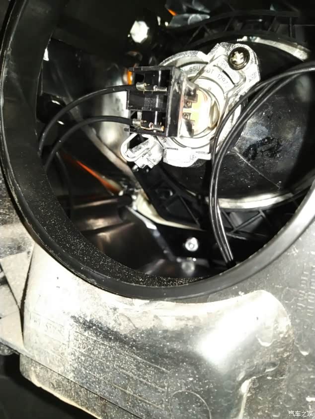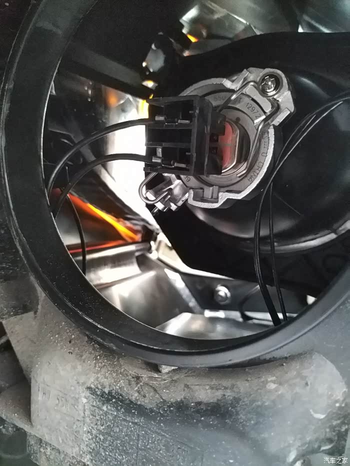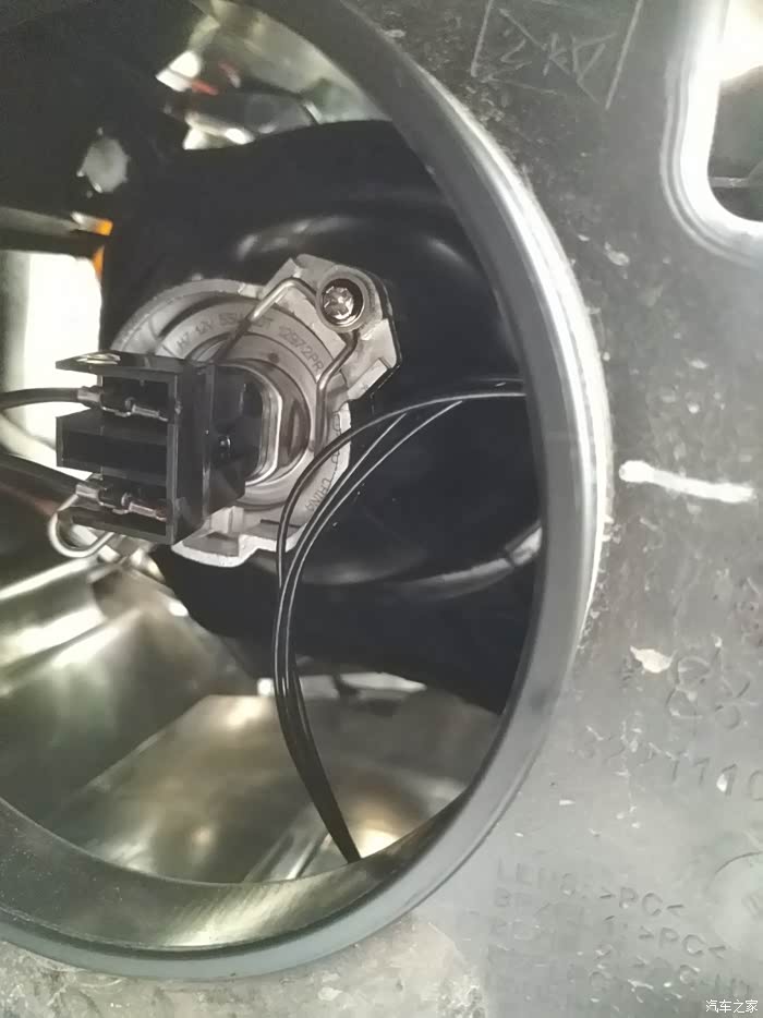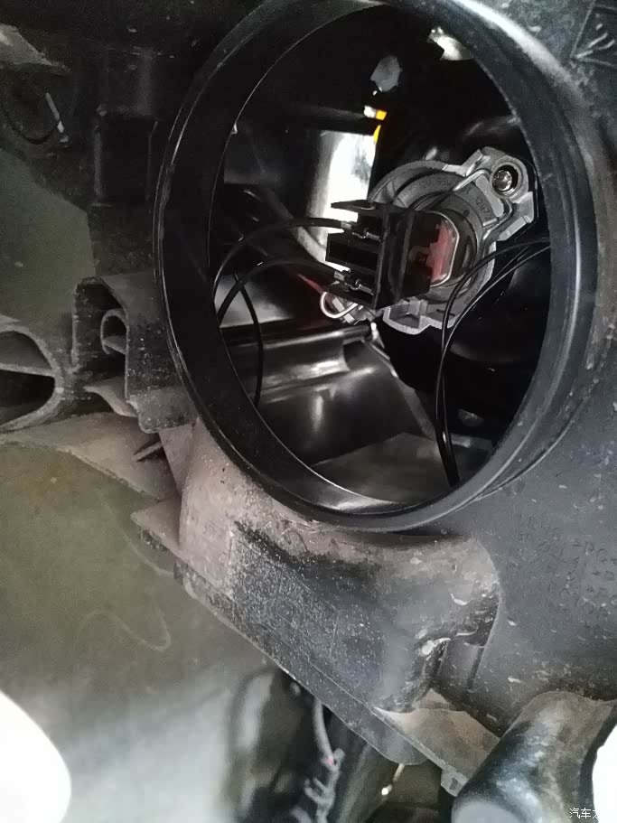 大灯背面图。位置有点窄。可以看到一个圆形防尘盖子。用手拿下很轻松。
