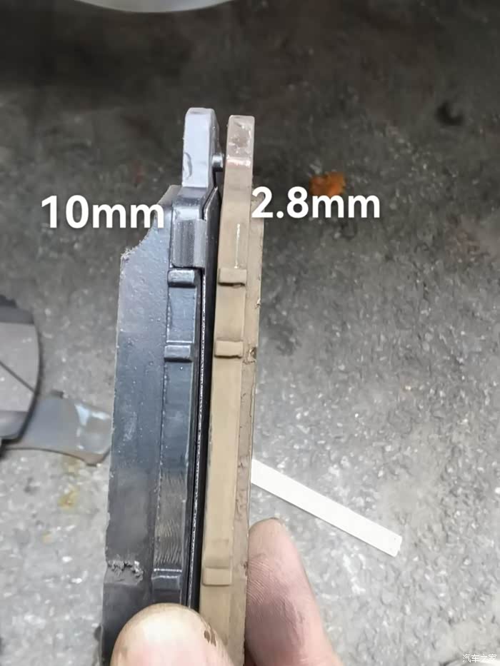 20万公里了,看了看前刹车片,剩约3.mm厚度,换了吧,毕竟没多少钱