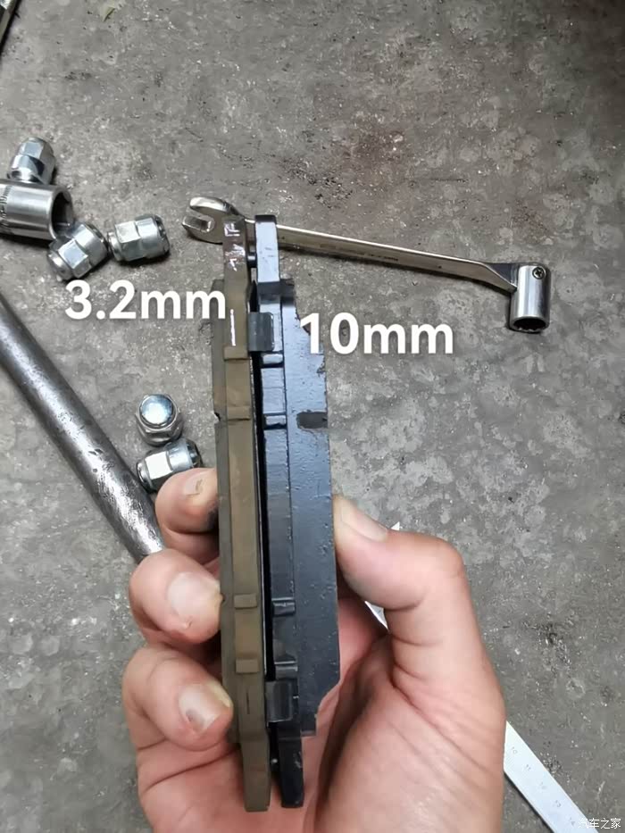 测量后刹车片厚度:
