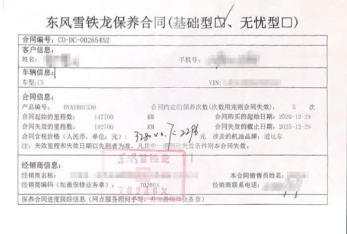 与4S购买签署的保养套餐协议,平均分解到单次保养的费用是462元。