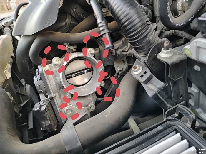 △有一说一小日子车挺好拆的 空滤盖子一拿 十字螺丝刀旋松管道一拔就看到节气门了 然后用小一字螺丝刀翘起卡扣拔掉节气门边上的插头 五颗螺丝一拆节气门就拿下来了