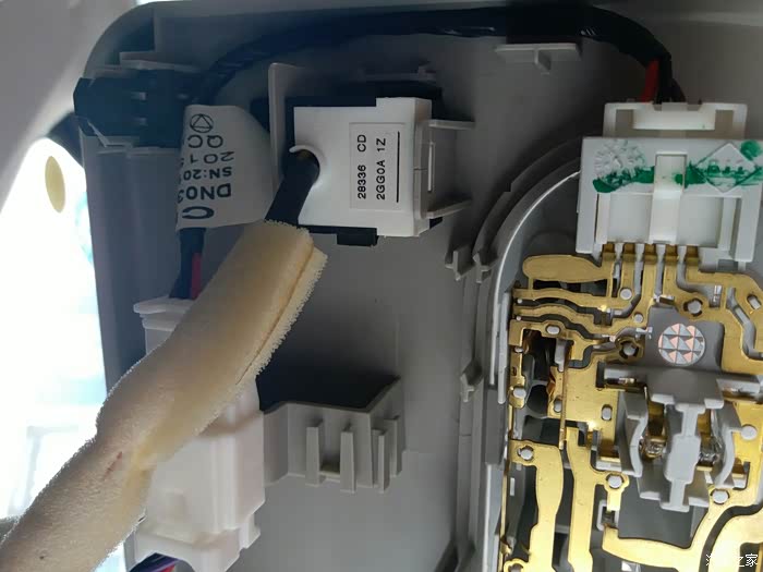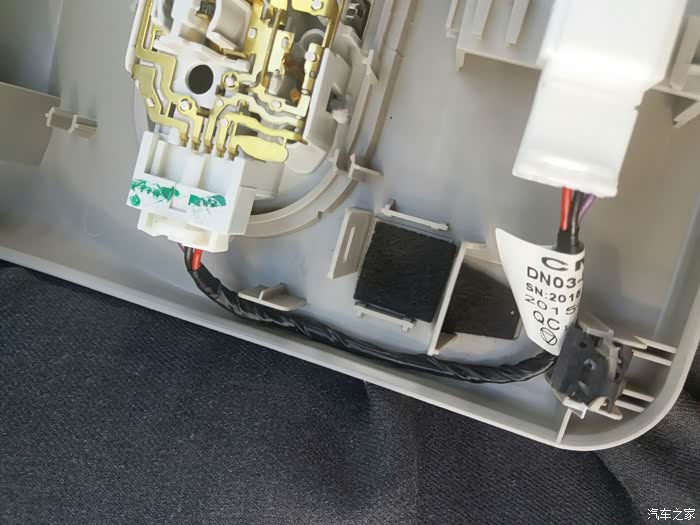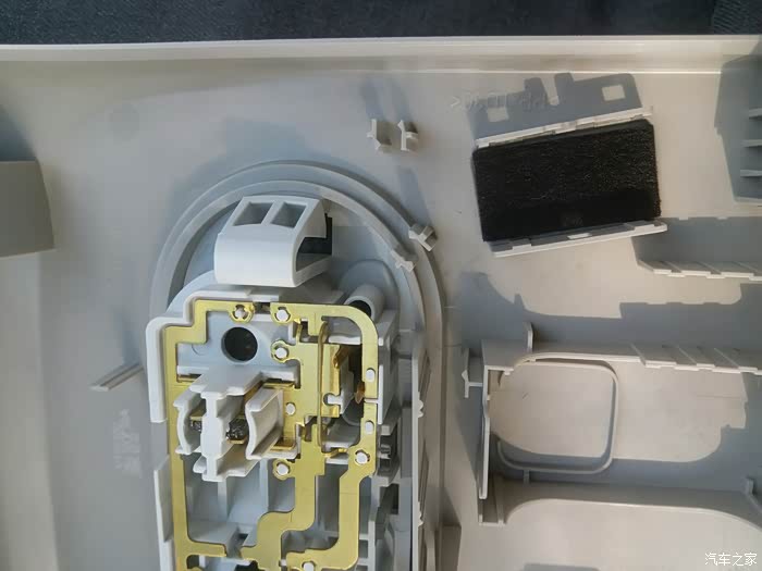 我买的买了指定不是逍客专用的,特么卡的位置都不一样,没办法只能把图中左侧看不见的挡板推掉!凑个着卡了进去。一切完成之后给媳妇打电话实验清晰度,得知有泛空声音,后来把那层给棉花拿掉之后好了,大家安的时候要注意麦克风的两个收音口别被挡住,注意调整位置让麦克风露在眼上,不然挡上就没用了!