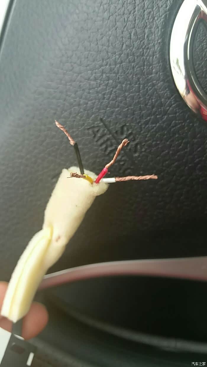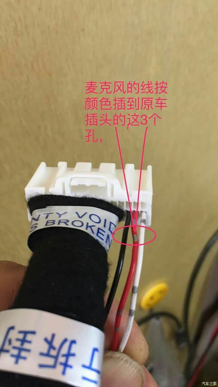 立刻研究接线,把麦克风的插头剪掉,把里面的插针留下接在线上。接完之后一看车上插头傻眼了,车上的插头是母头,接的是公头。插进去以后接触不良根本就用不了!