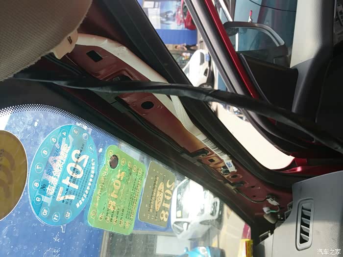 这里是A柱,为了走线必须拆掉。这里提示一下“我是暴力拆掉的,扒开装饰板用一字改锥撬的这个卡扣,大家如果撬的话一定注意要撬卡扣根部,就是和车体链接的那段。另外安装的时候要注意,这东西是有位置的,如图!”