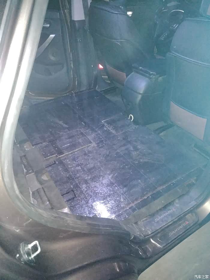 9、配件全部做好后就该装车了,最后在车底上打了4个1cm的孔。再贴好地板革大工搞成了。1米8的我躺下是可以伸直腿的,但是坐着也顶到棚了。。。。。还好我很少坐后面,我都是当司机。。。。