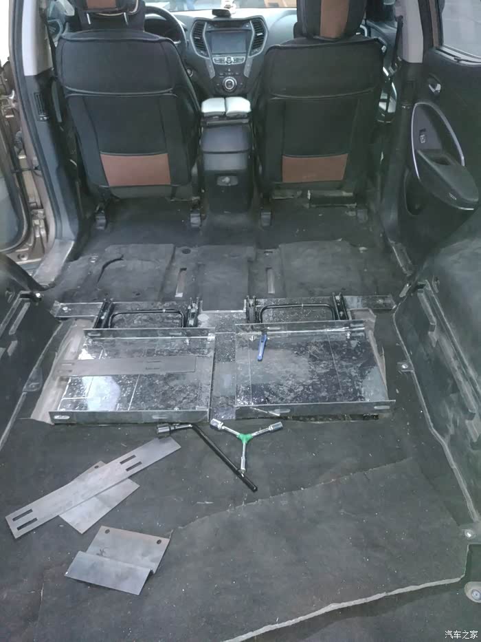1、拆座椅。量车内空间尺寸,便于找到合适的座椅。我甚至将两边的侧板都拆了,发现拆侧板也腾不出多少空间。主要就是轮子那里凸起太大了,不想搞更大的破坏了,纠结后还是装了回去。