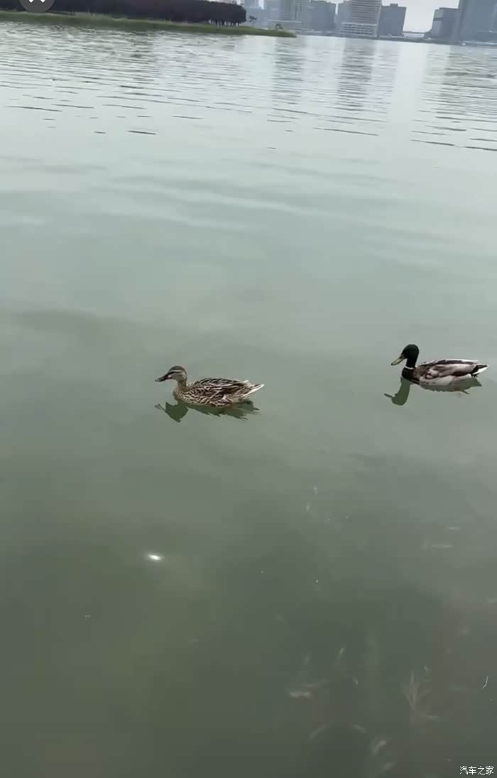沿着小路前行,湖水波光粼粼,远处的小岛被茂密树木覆盖,郁郁葱葱。湖面上,红色浮标整齐排列,划分出不同区域。几只鸭子悠闲地游弋着,时而把头扎进水里觅食,时而浮出水面梳理羽毛,为湖面增添了几分灵动。