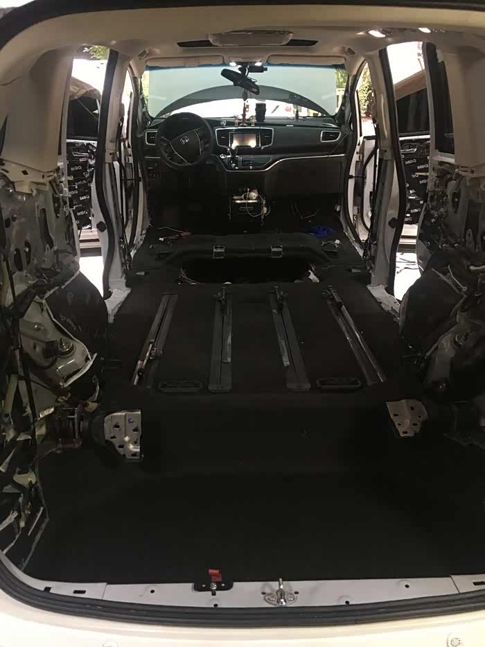 奥德赛买来到现在已经快二年了,整体都还是比较满意,经济舒适省油空间大。缺点胎噪大隔音差音响音质差,天天看论坛研究怎么折腾,参考别人改装案例和实体店最终还是决定改装升级音响和全车隔音。用时2天半