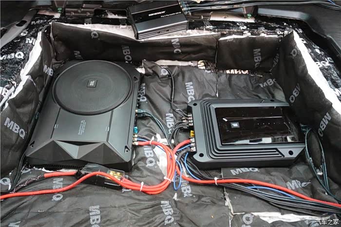 考虑到平时第三排经常要放到装货物,所有没办法只能牺牲备胎了。但是安装在这里里面空间比较宽敞低音效果更佳棒。