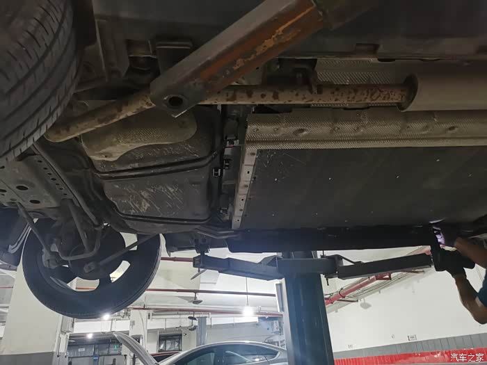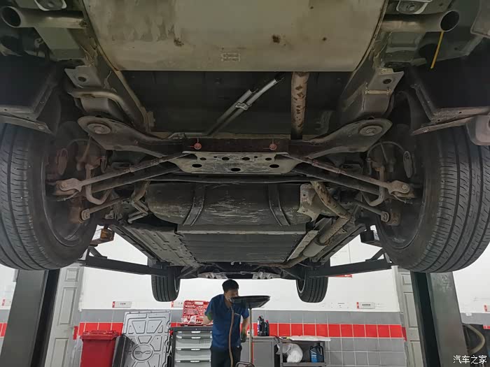 这是车辆举起来拍的,不是这次首保举起来我都没有发现底盘生锈这么严重的情况。