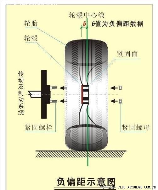 负偏距就是固定面比轮毂中心线更靠里(即靠近制动系统),