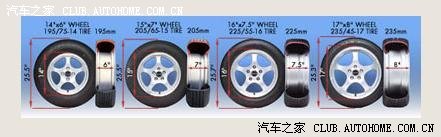 轮毂的尺寸与宽度是一组非常重要的数据,尺寸越大,轮胎就应该越薄,因为要尽量保持轮胎圆周周长,否则迈速表会产生偏差。具体的转换公式在论坛里有帖子,需要的朋友可以在论坛里搜索一下。轮胎越薄,对应路面的感觉就越明显。轮子越宽,能装的轮胎就越宽,虽然会提高油耗,但接地面积越大,抓地就越稳,为车子性能考虑的朋友应该合理的更换更宽的轮胎。
