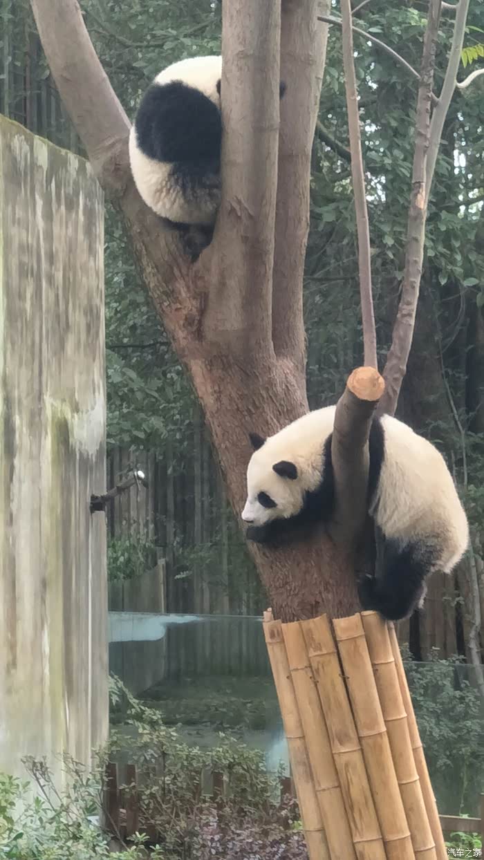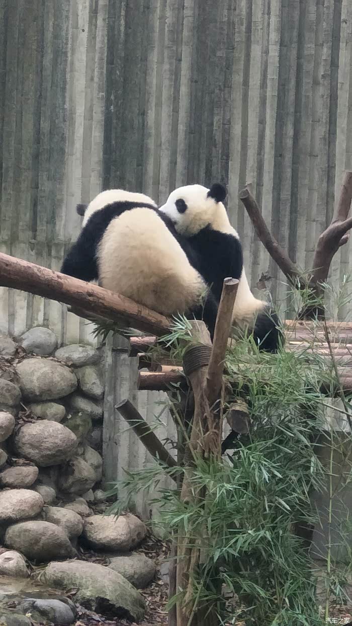我家的大宝和车友们一起看熊猫