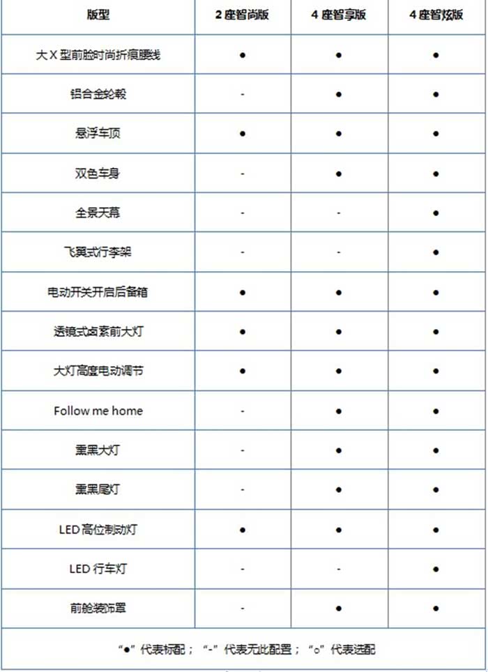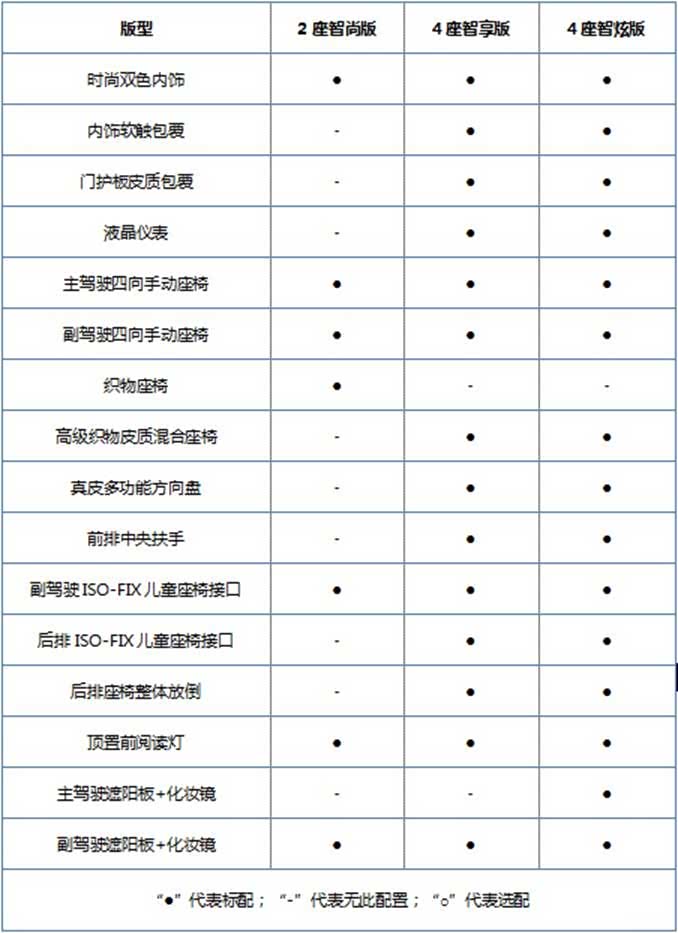 4座智享版和智炫版全一样,2座的智尚版有一部分没有。