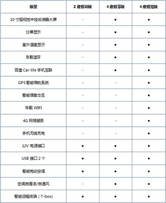 盼星星盼月亮,终于盼到了新款小蚂蚁上市,果然是不负众望,主要是价格我估计在很多人的预算内。当然也包括我,正好给媳妇买辆,哈哈。已经订好车了,下周去提车。我看很多人疑惑4 座智炫版、4 座智享版以及2 座智尚版到底有什么不同,我也是研究了一番,跟店里的销售咨询了很多,这就给大家聊一聊。