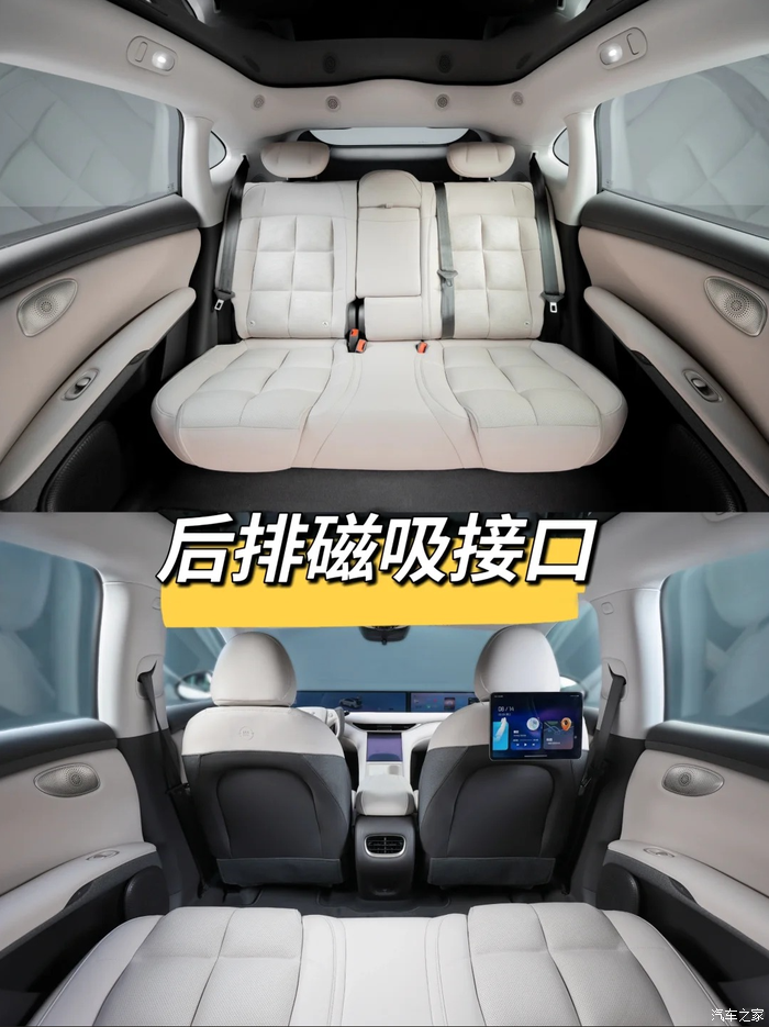 2、后排新增了磁吸接口,可以吸pad了,后排的小朋友再也不用拼命把头凑上来看视频了,旧款不知道能不能选装。