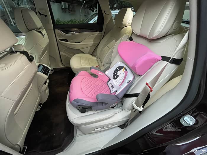 第二排独立座椅,很舒适,儿子喜欢上车就打开通风功能,闺女也比较适应这个增高坐垫