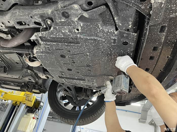 昂科旗比昂科威多了发动机护板,师傅边拆边抱怨,说之前那个小的是可以单独拆的,但是有些车出现了托底,固定螺丝吧塑料油底壳戳穿了,所以现在变成铆钉的,不可拆卸的
