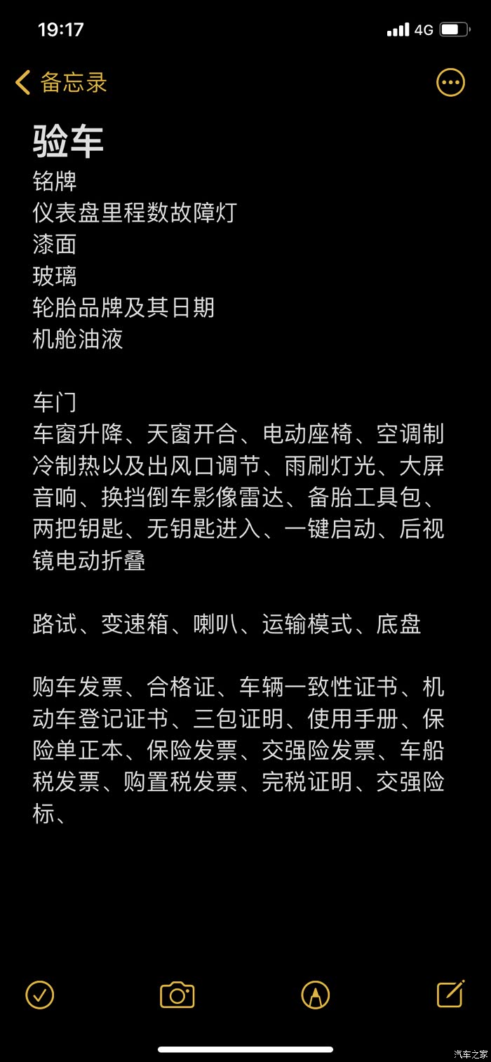接下来就是验车环节,整理了验车要点,前前后后验了一个多小时,确认各项没有问题,开走挂牌!