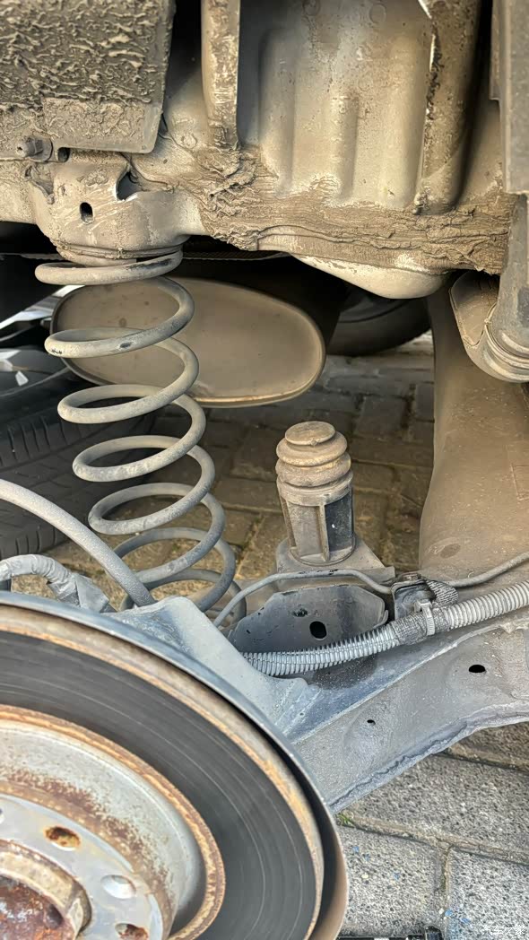 拆完减震的样子,装的时候要把后桥顶起来,减震不够长,不顶起来上面螺钉拧不到