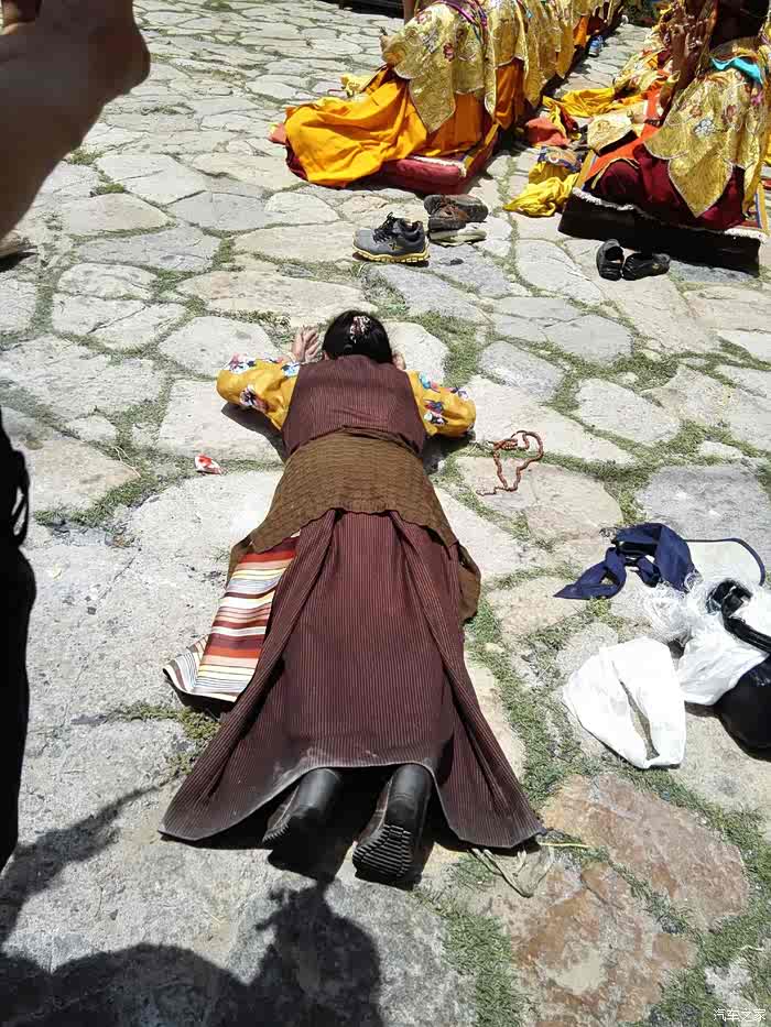 虔诚的信徒五体投地的朝拜