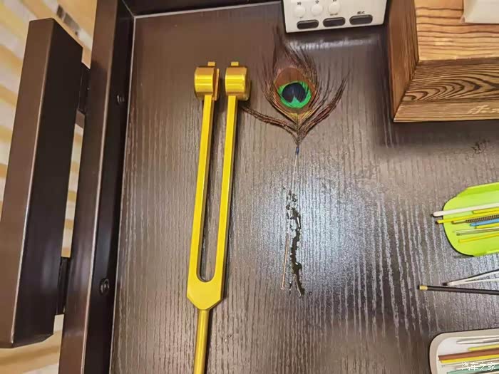 十八般工具是各种上啊。有放松的羽毛和音叉,还有掏耳朵的耳勺,特别专业。
