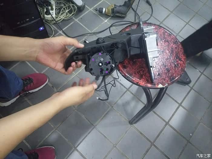 再把屏幕装好。这个时候把线路排好以后会先测试车灯有没有被破坏,看看转向灯刹车灯等,一切正常才开始装门板等东西。