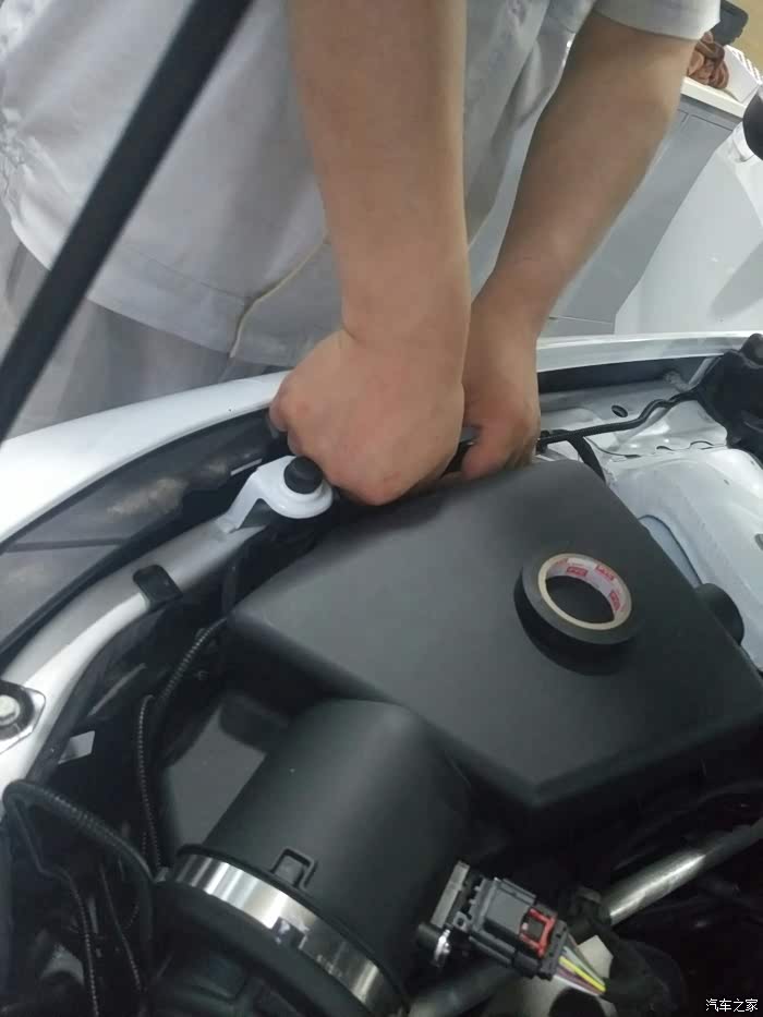 前面摄像头,线是顺着发动机仓边缘捋顺过去的。