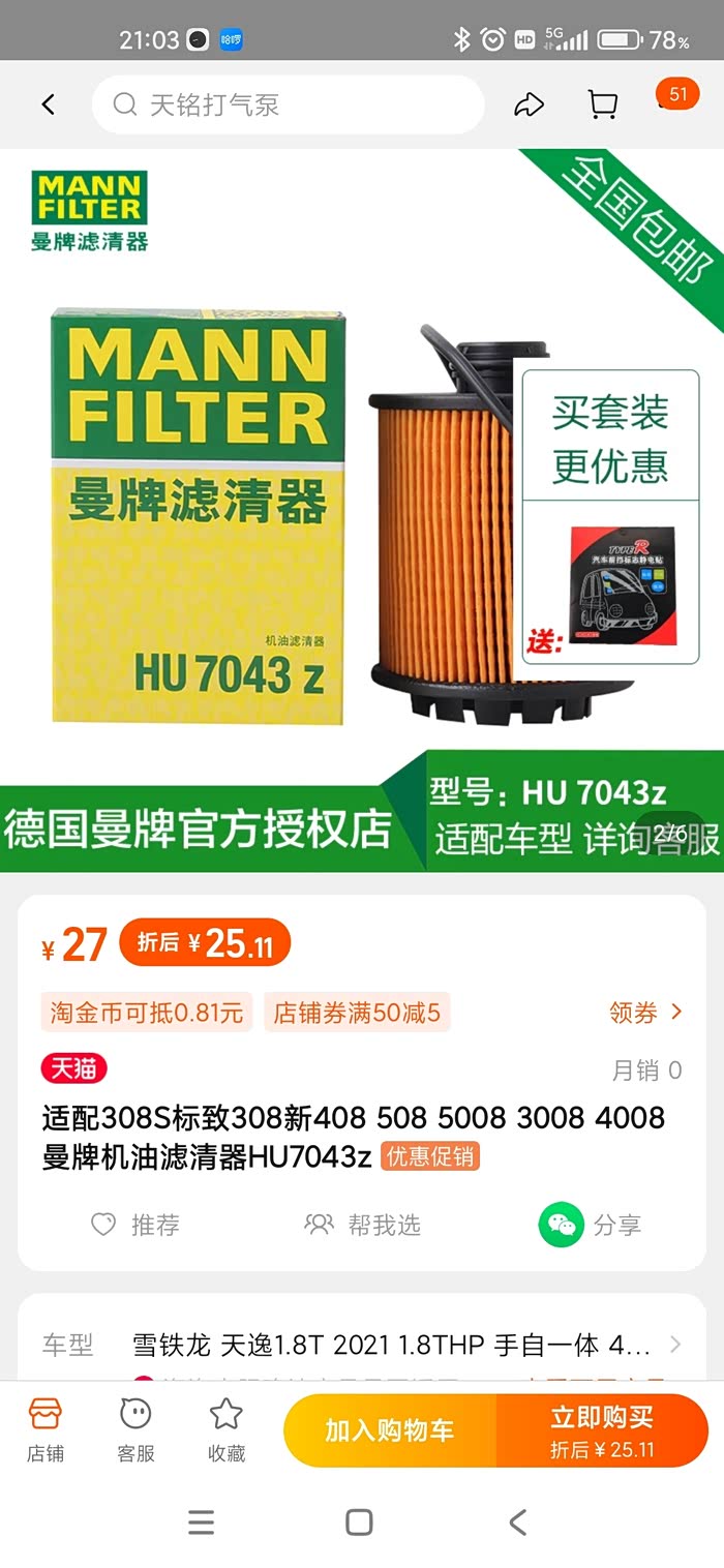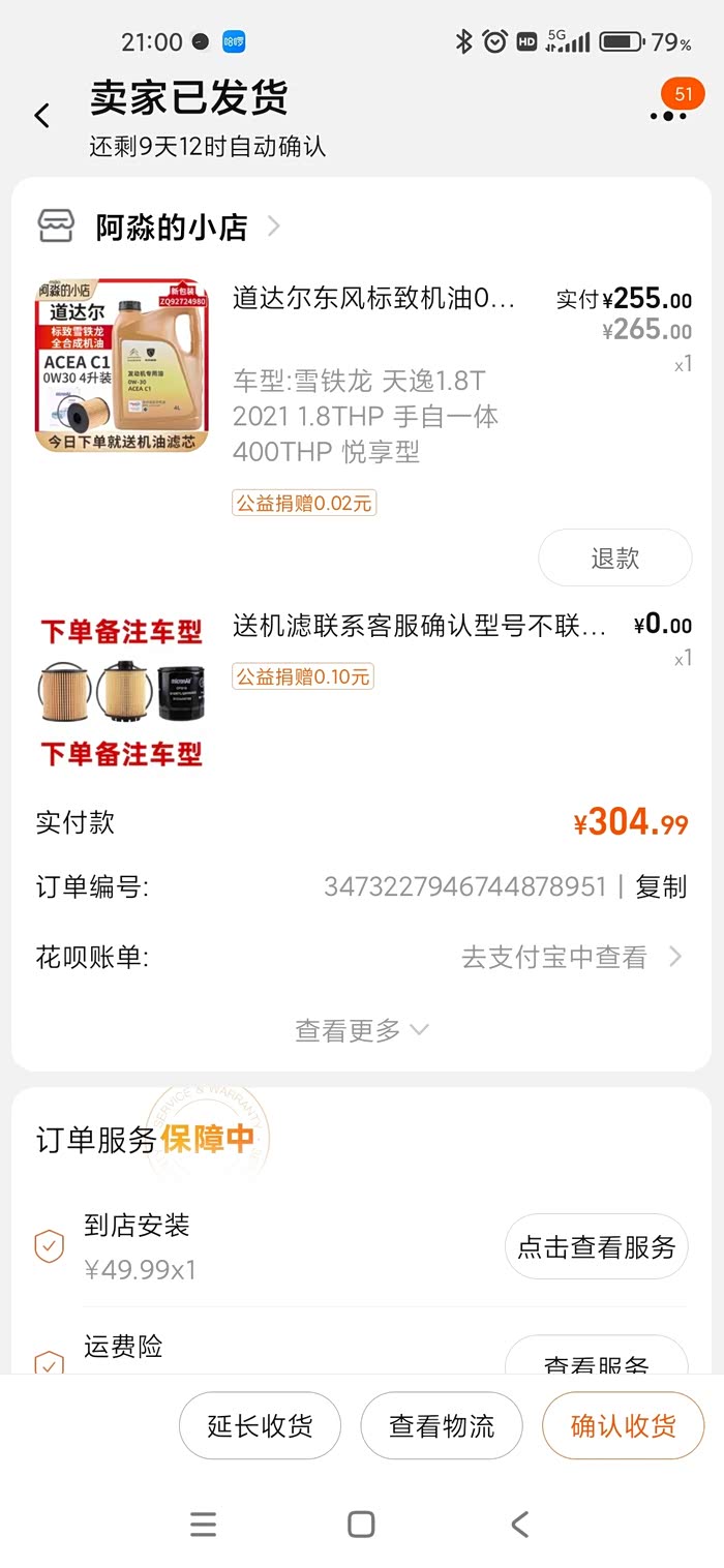 又到换机油机滤,小保养时候。在网上订购了原厂道达尔全合成机油0-30wC1+曼牌机滤,店家推荐购买的小保养工时。