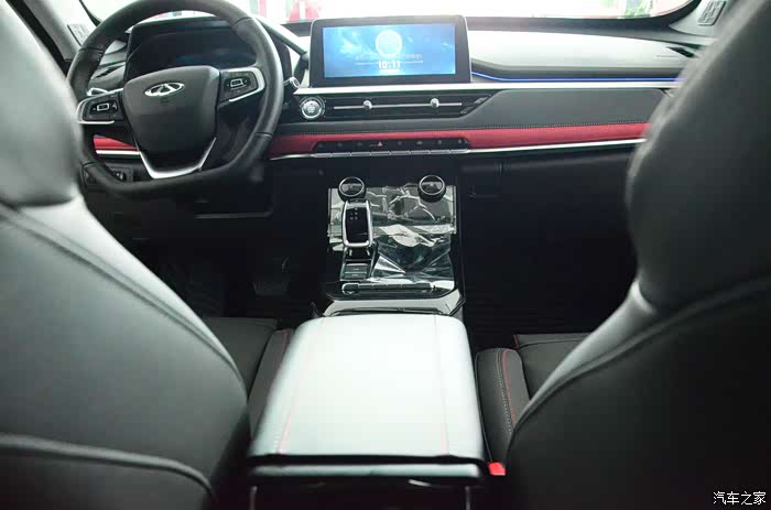 整体属于环抱式风格,科技感十足,中控台的用料非常扎实,采用了大范围的软质材料进行覆盖,中间的皮革面料和缝线看起来非常有档次感。瑞虎7采用了10.25英寸中控大屏,并搭载了奇瑞自主研发的雄狮互联系统,屏幕的反应速度十分不错,支持多点触控。另外,新款瑞虎7还配备了全息影像功能,乘坐空间也很不错,小编的身高1米82,前排座椅降至最低,头部还有一拳的空间,后排头部同样还有一拳的空间,腿部有两拳的余量。