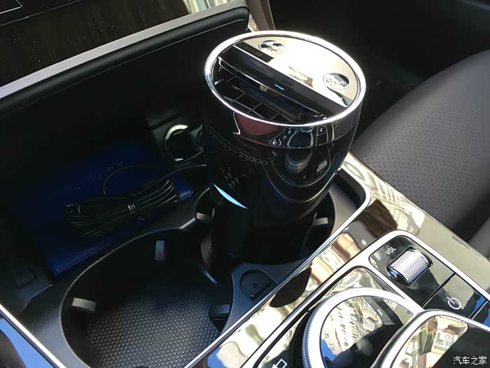 这个要特别的说一下,花粉空气净化器,除甲醛细菌和异味儿的。放在杯架上很省空间,而且插在点烟器上的线也不会耷拉在外面,用了两天效果很不错,PM2.5估计没什么效果,但是车里真的没什么异味儿了~