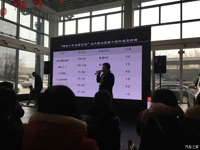 看车当天并没有急于交意向金,而是到家在网上继续寻找车源,无意中在汽车之家的网站上看到了1月16日北京站的奔驰团购广告,感觉瞬间看到了曙光一样,当时想甭管能不能优惠先去看看再说吧,就当自己安慰自己了,于是仔细看了下活动介绍后就在网上报名等通知了。最巧的是接到客服电话后,告知我团购活动的4S店地址和我当时去看车的是同一家店,马上拿起手机问了销售,销售说即使是团购GLC也要加价提车的,那好吧就当过去凑热闹了