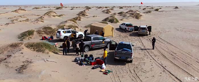 到达预计好的扎营地点后我们就开始扎营了,一行五辆车,所需的食物饮水和燃油的补给都是非常巨大的,幸亏我们的皮卡后货箱足够大。