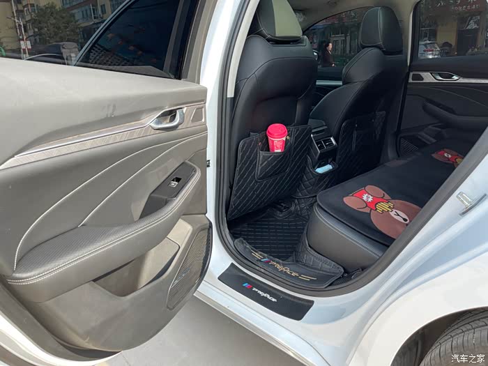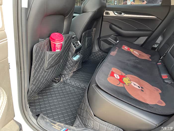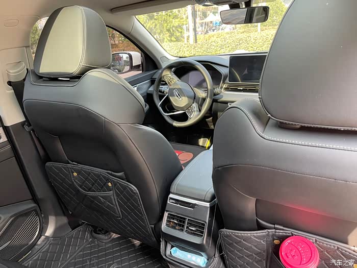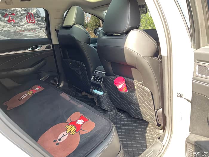 乘坐在后排,将中间的扶手放下,行车中手臂靠着在上面,很是惬意。